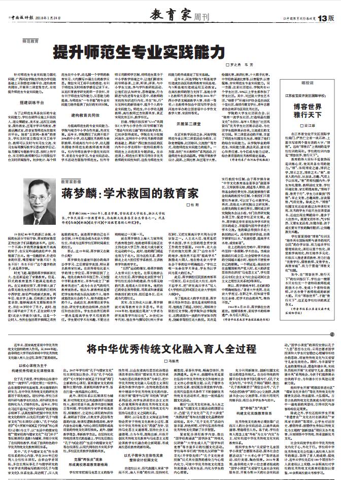 中国教师报:将中华优秀传统文化融入育人全过程