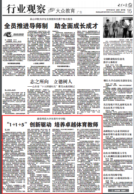 大众日报:完美体育(中国)官方网站体育科学学院“1+1+5”创新驱动 培养卓越体育教师