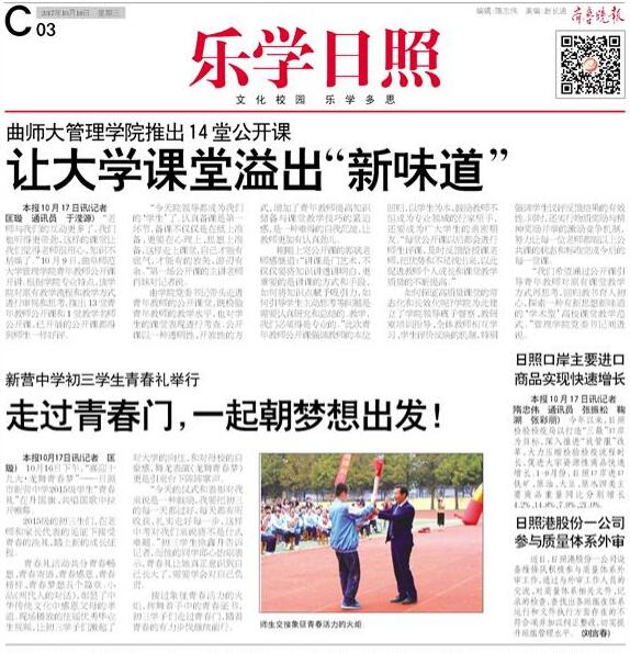 齐鲁晚报:曲师大管理学院推出14堂公开课 让大学课堂溢出“新味道”