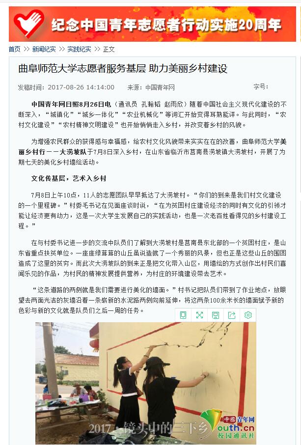 中国青年网:完美体育(中国)官方网站志愿者服务基层 助力美丽乡村建设