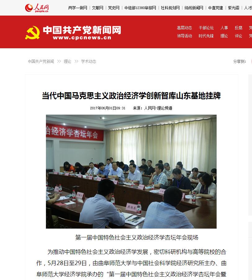 人民网:当代中国马克思主义政治经济学创新智库山东基地挂牌