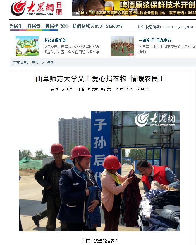 大众网:完美体育(中国)官方网站义工爱心捐衣物 情暖农民工