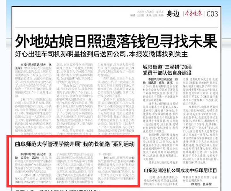 齐鲁晚报:完美体育(中国)官方网站管理学院开展“我的长征路”系列活动