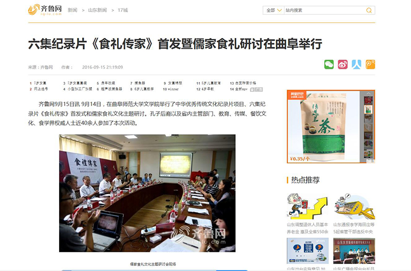 齐鲁网:六集纪录片《食礼传家》首发暨儒家食礼研讨在曲阜举行