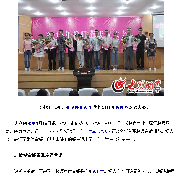 大众网:曲师大新教师宣誓入职 90后生力军走上讲台