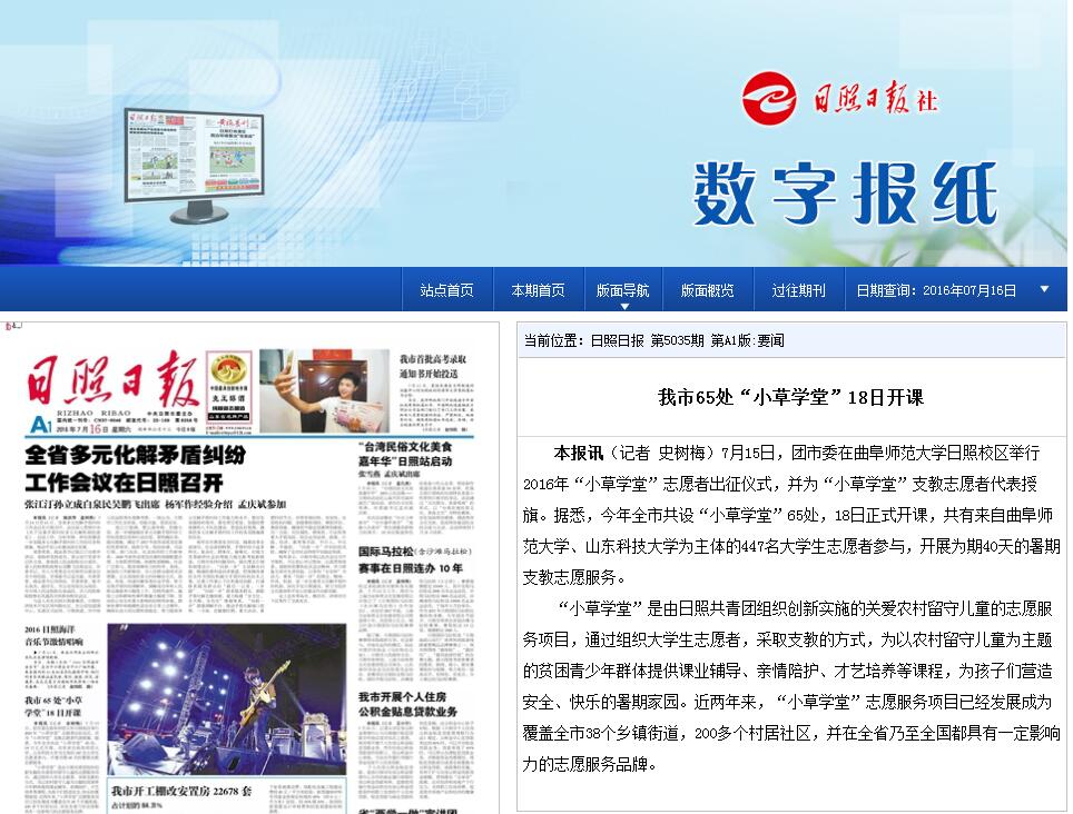 齐鲁晚报:“小草学堂”志愿者出征仪式在曲师大日照校区举行