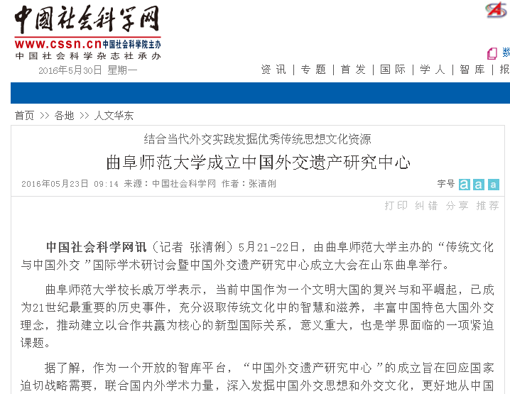 中国社会科学网:完美体育(中国)官方网站成立中国外交遗产研究中心