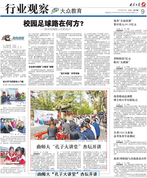 大众日报:曲师大“孔子大讲堂”杏坛开讲