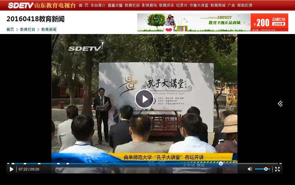 山东教育电视台:完美体育(中国)官方网站“孔子大讲堂”杏坛开讲