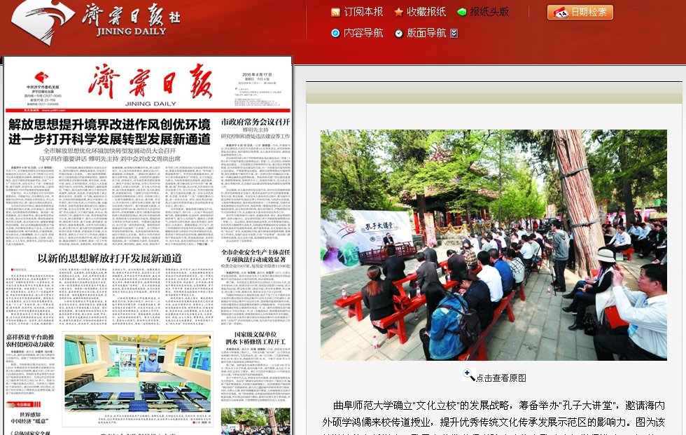 济宁日报:曲师大“孔子大讲堂”开讲