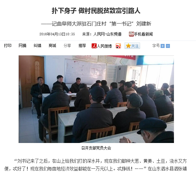 人民网:扑下身子 做村民脱贫致富引路人——记曲阜师大派驻石门庄村“第一书记”刘建新