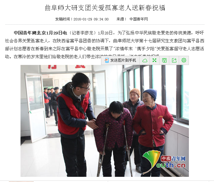 中国青年网:曲阜师大研支团关爱孤寡老人送新春祝福