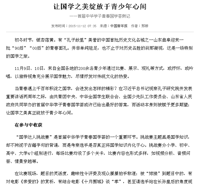 中国教育在线:首届中华学子青春国学荟系列活动在曲阜师大举办