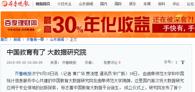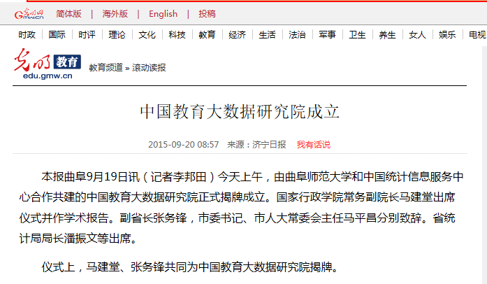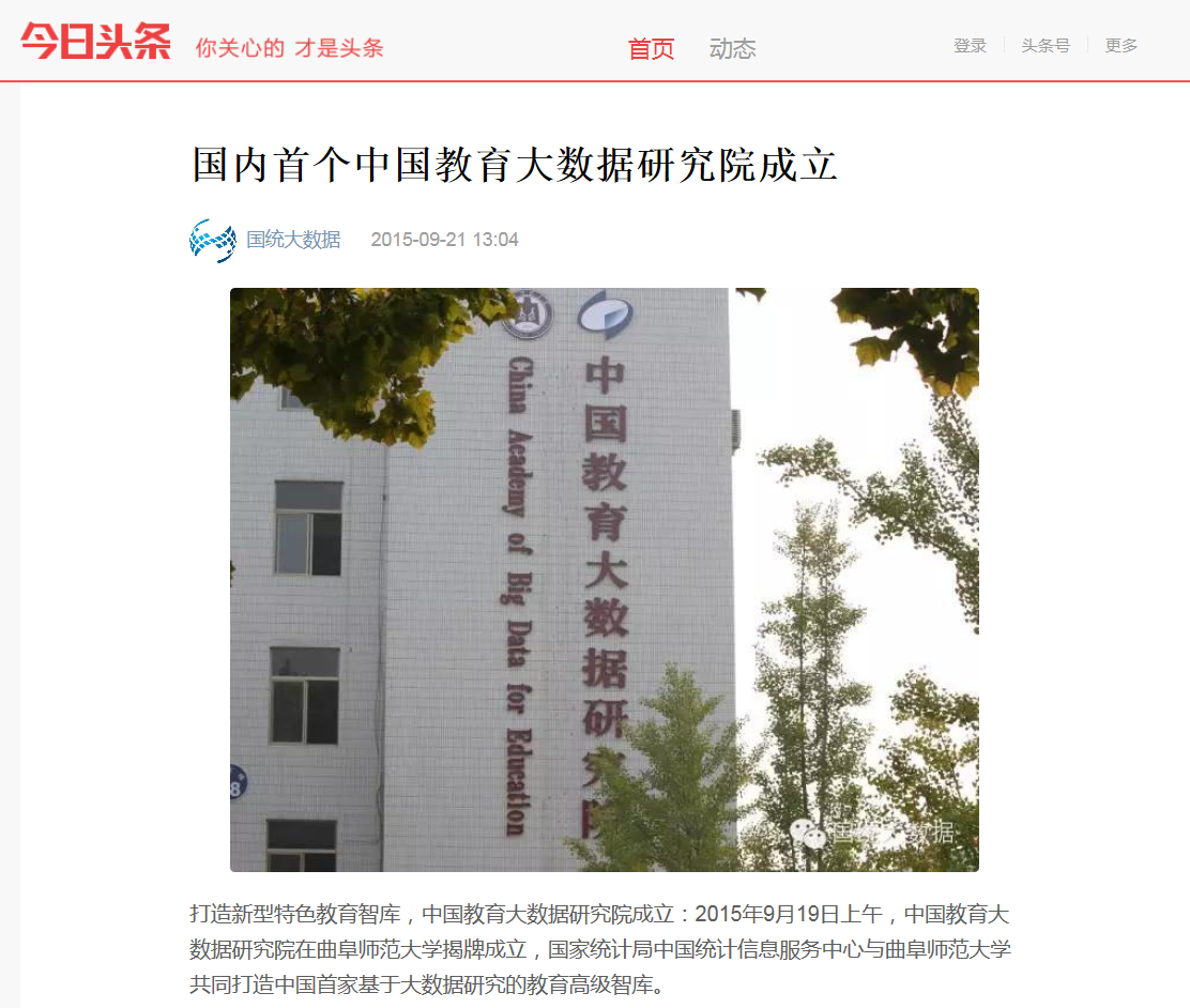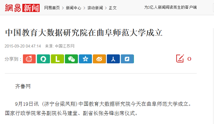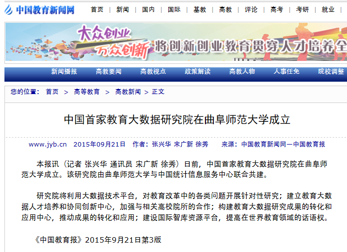 媒体报道:中国教育大数据研究院在完美体育(中国)官方网站成立