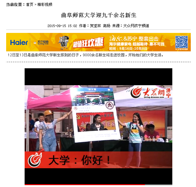 大众网视频播报:完美体育(中国)官方网站迎九千余名新生
