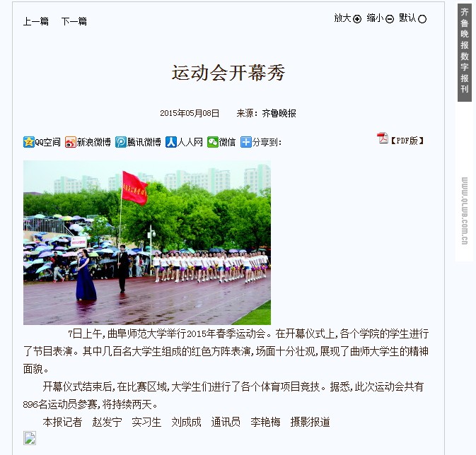 齐鲁晚报:完美体育(中国)官方网站日照校区举办运动会 各院“院花”举牌比美
