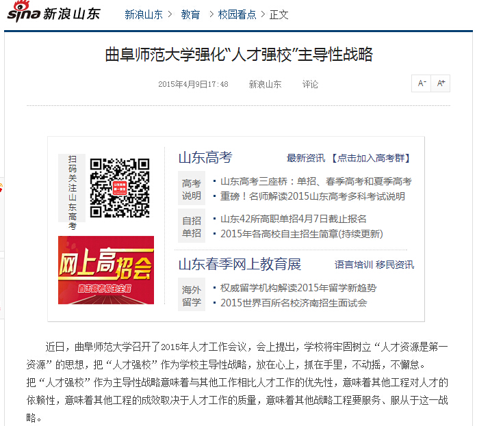 新浪网:完美体育(中国)官方网站强化“人才强校”主导性战略
