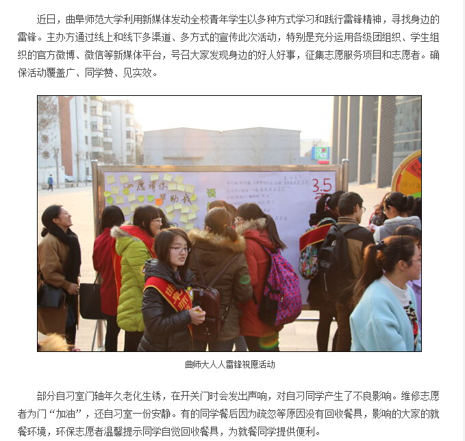 新浪网:曲师大利用新媒体发起"人人雷锋"志愿活动