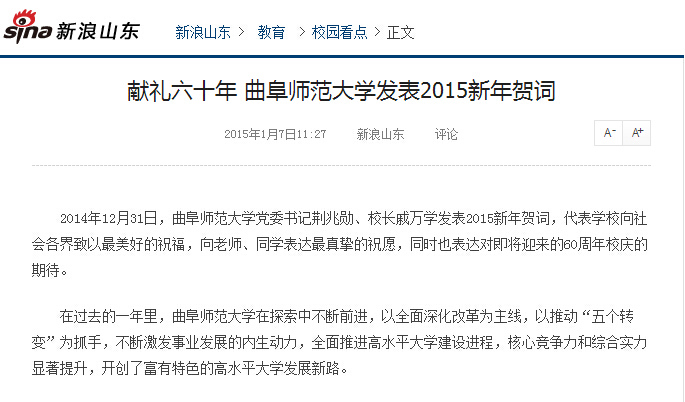 新浪网:献礼六十年 完美体育(中国)官方网站发表2015新年贺词