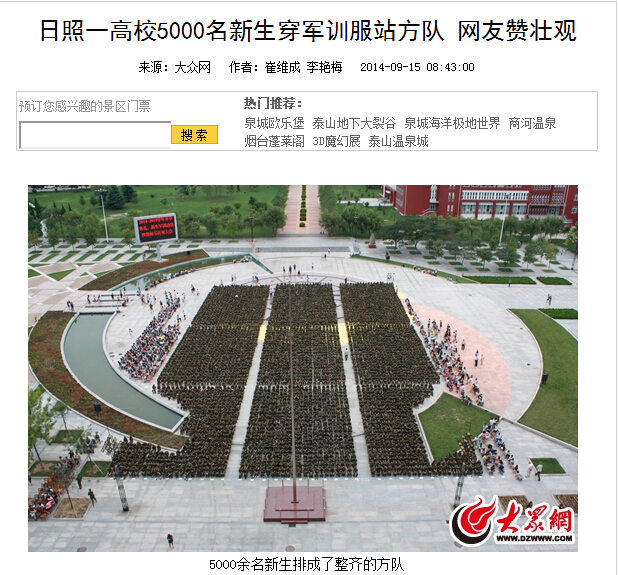 大众网:完美体育(中国)官方网站举行2014——2015学年开学典礼、新生军训动员大会