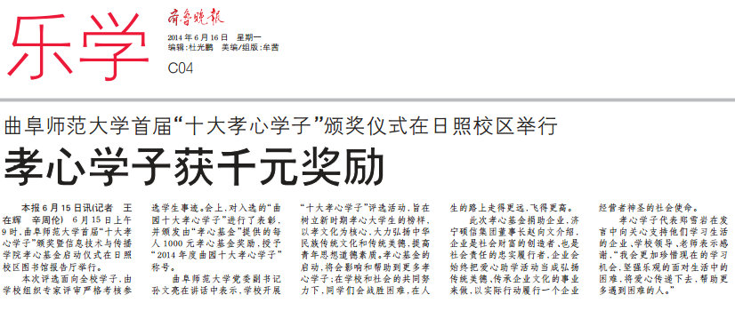 完美体育(中国)官方网站首届“十大孝心学子”颁奖仪式在日照校区举行