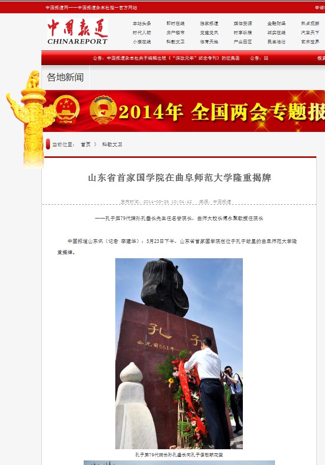 中国报道:山东省首家国学院在完美体育(中国)官方网站隆重揭牌