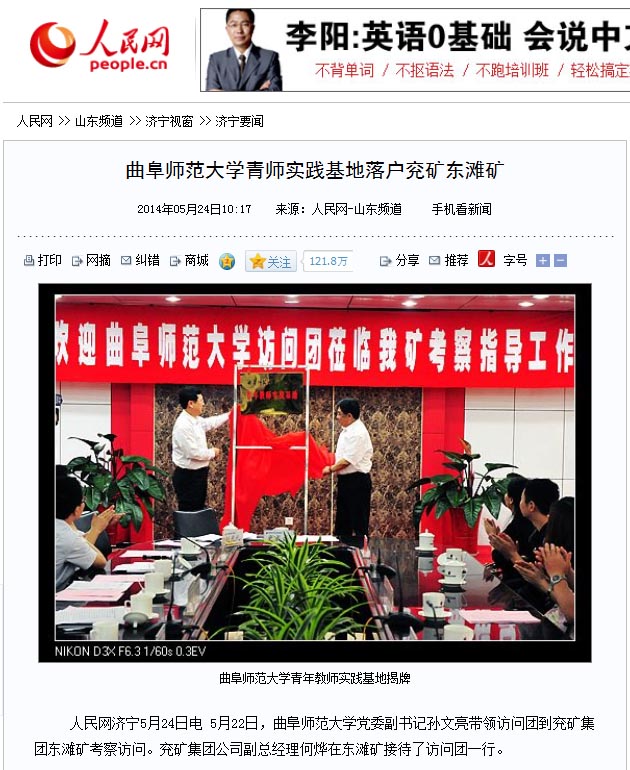 人民网:完美体育(中国)官方网站青师实践基地落户兖矿东滩矿