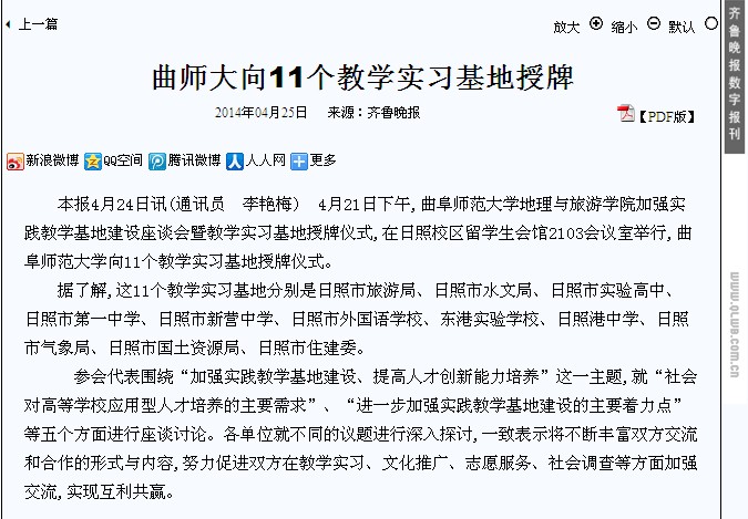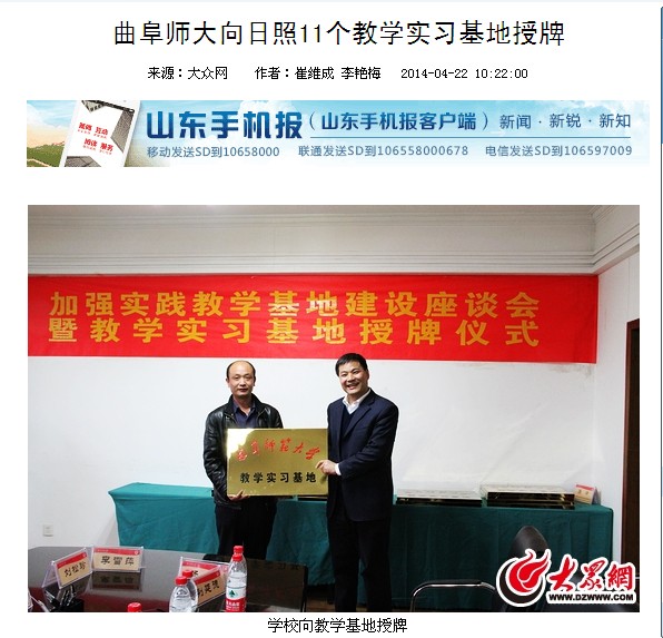 齐鲁晚报:曲阜师大向日照11个教学实习基地授牌
