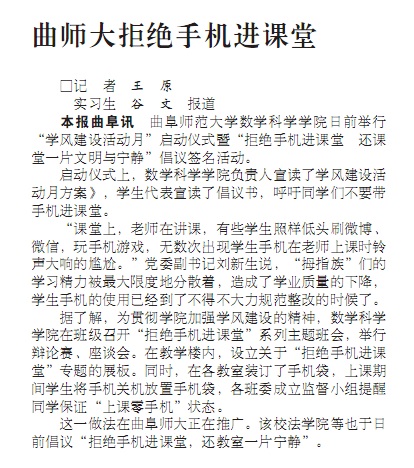 大众日报:曲师大拒绝手机进课堂