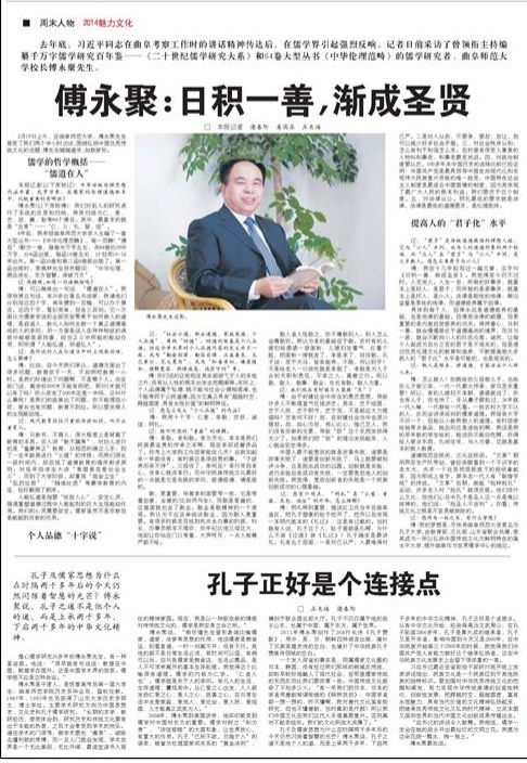 大众日报:儒学大家傅永聚:日积一善,渐成圣贤