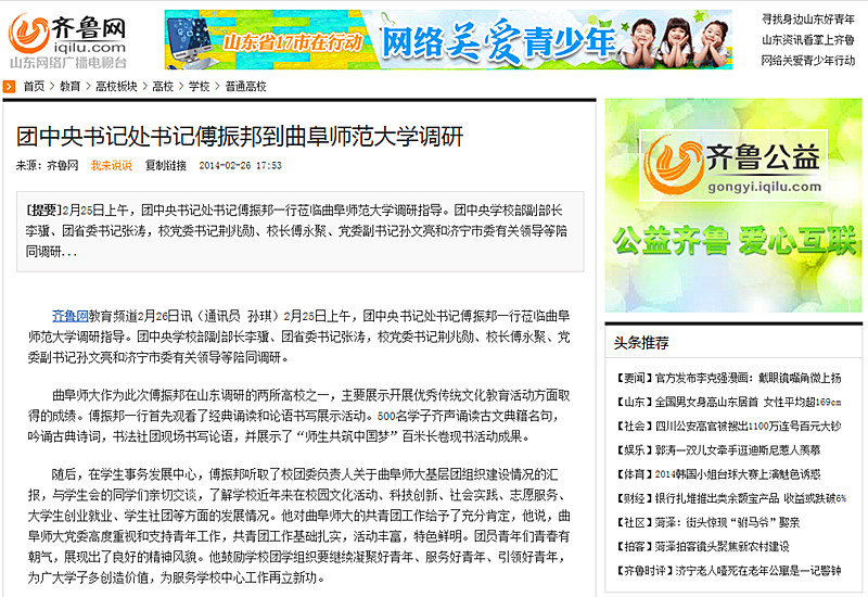 齐鲁网:团中央书记处书记傅振邦到完美体育(中国)官方网站调研