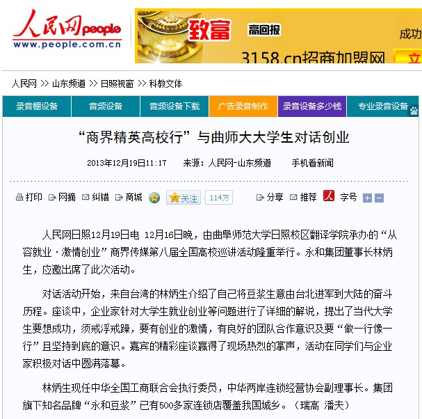 人民网:“商界精英高校行”与曲师大大学生对话创业