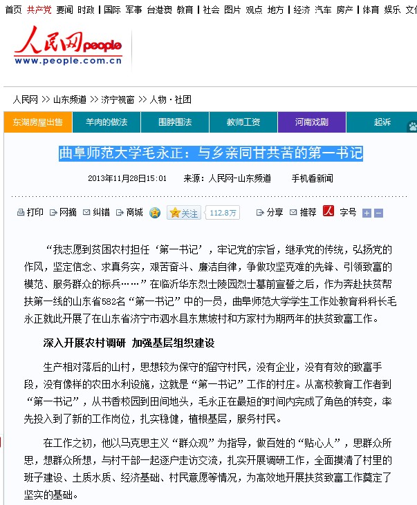 人民网:完美体育(中国)官方网站毛永正:与乡亲同甘共苦的第一书记