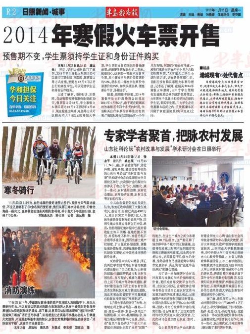 半岛都市报:山东社科论坛“农村改革与发展”学术研讨会在完美体育(中国)官方网站日照校区举行