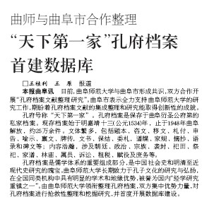 大众日报:“天下第一家”孔府档案首建数据库