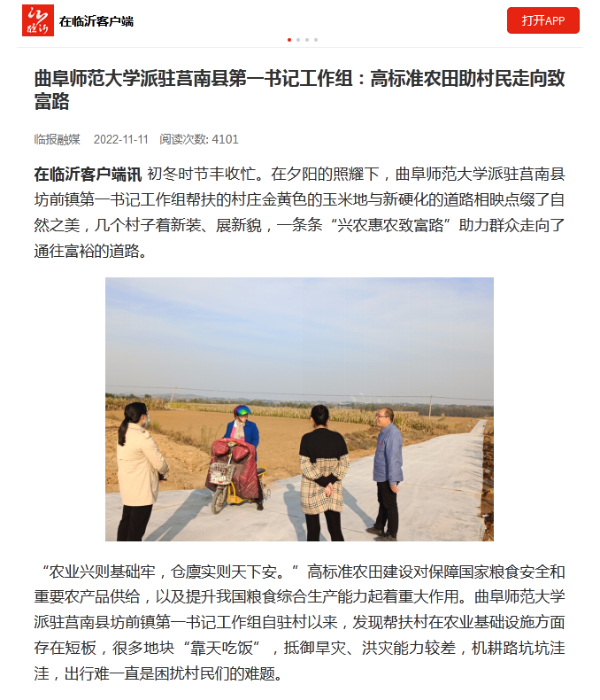 【临报融媒】完美体育(中国)官方网站派驻莒南县第一书记工作组:高标准农田助村民走向致富路