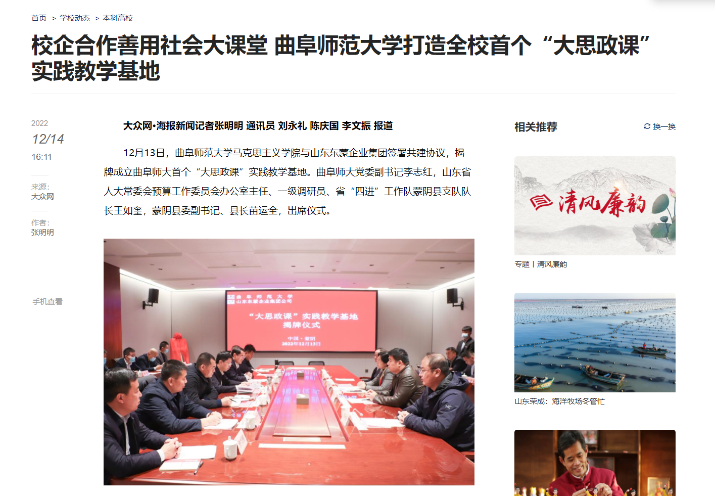 【大众网】完美体育(中国)官方网站打造全校首个“大思政课”实践教学基地