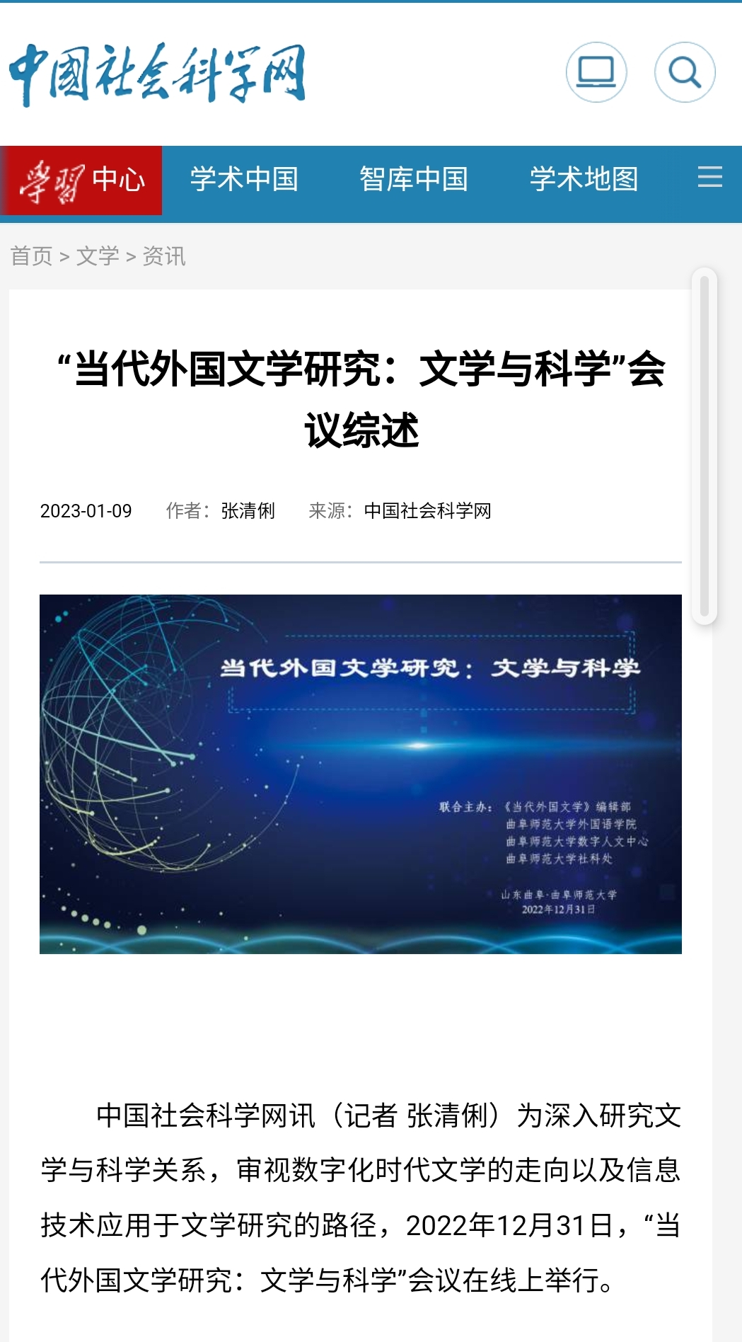 【中国社会科学网】“当代外国文学研究:文学与科学”会议综述