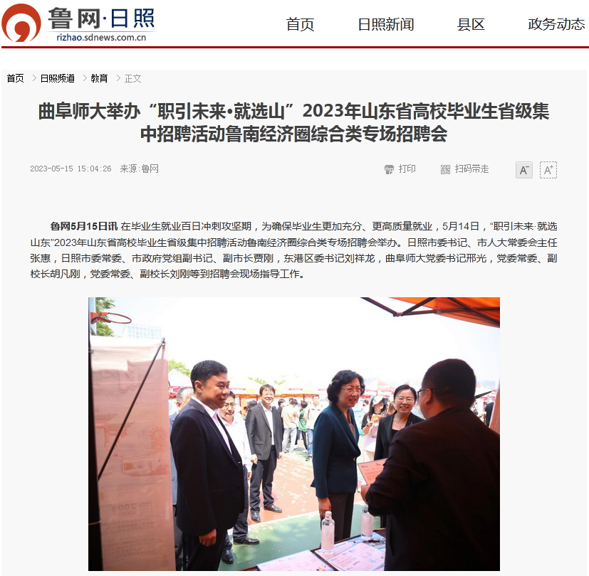 【鲁网】曲阜师大举办“职引未来·就选山东”2023年山东省高校毕业生省级集中招聘活动鲁南经济圈综合类专场招聘会