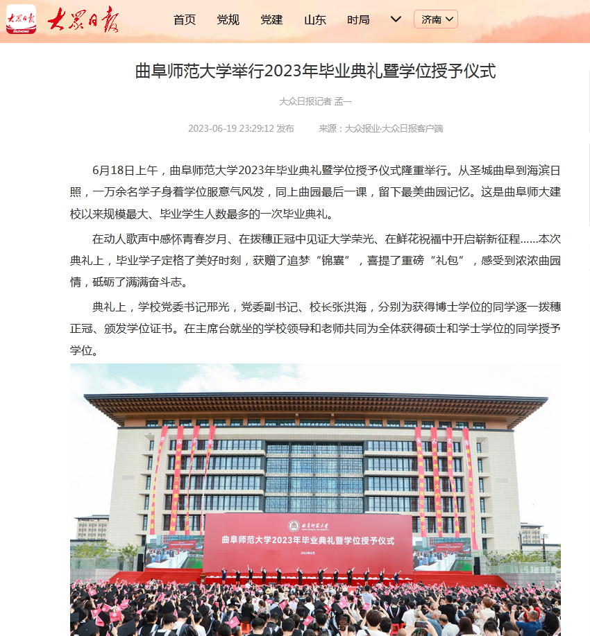 【大众日报】完美体育(中国)官方网站举行2023年毕业典礼暨学位授予仪式