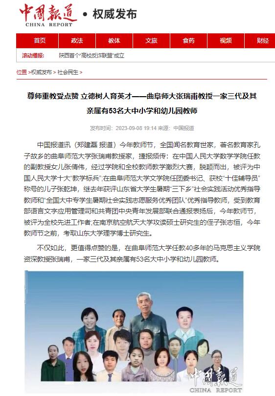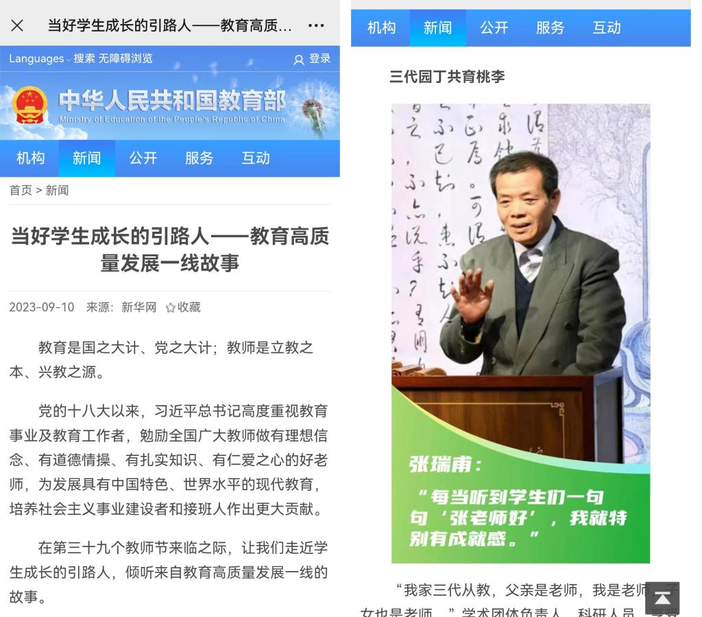 【新华社】完美体育(中国)官方网站张瑞甫教授:三代园丁共育桃李