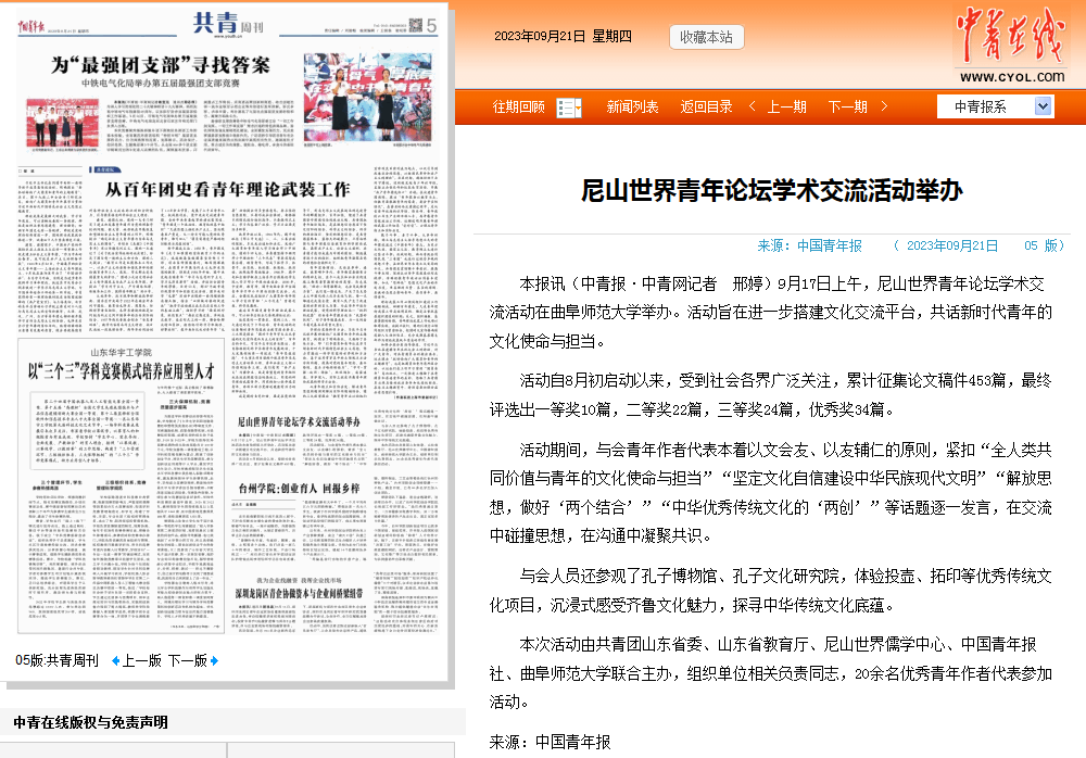 【中国青年报】尼山世界青年论坛学术交流活动在完美体育(中国)官方网站举办