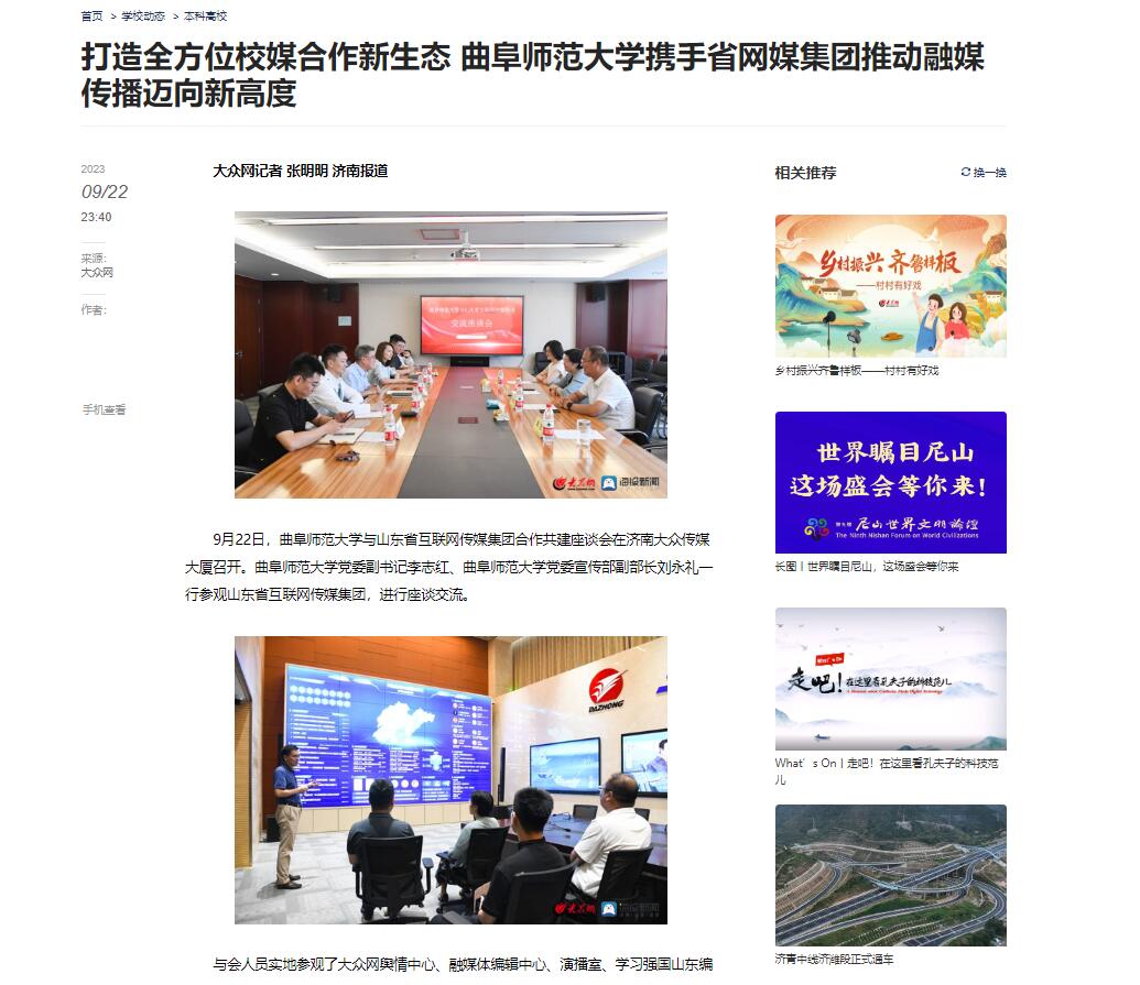 【大众网】完美体育(中国)官方网站携手省网媒集团推动融媒传播迈向新高度