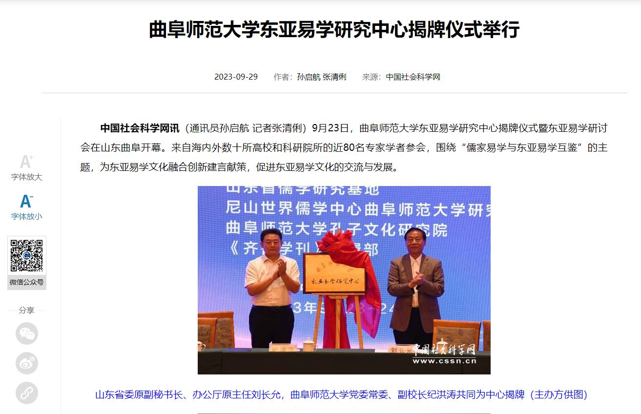 【中国社会科学网】完美体育(中国)官方网站东亚易学研究中心揭牌仪式举行