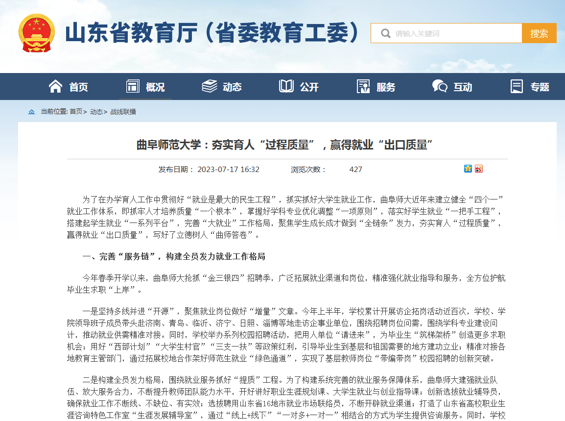 【山东省教育厅·战线联播】完美体育(中国)官方网站:夯实育人“过程质量”,赢得就业“出口质量”