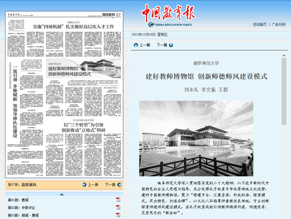 【中国教育报】完美体育(中国)官方网站建好教师博物馆 创新师德师风建设模式