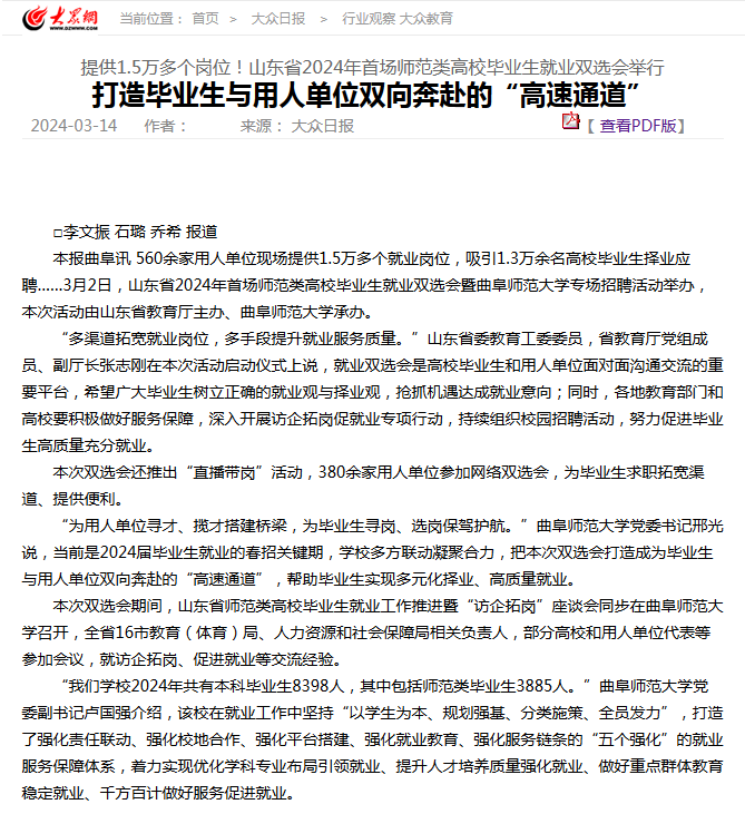 【大众日报】完美体育(中国)官方网站:打造毕业生与用人单位双向奔赴的“高速通道”