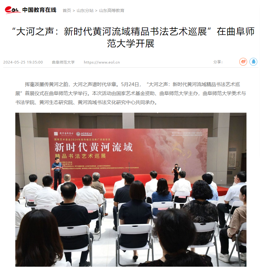 【中国教育在线】“大河之声:新时代黄河流域精品书法艺术巡展”在完美体育(中国)官方网站开展
