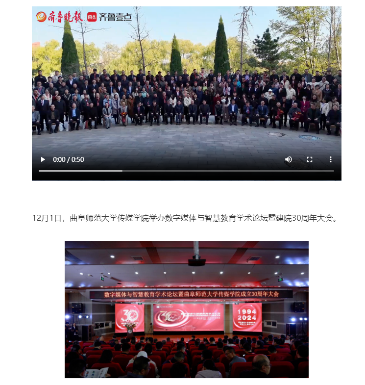 春秋迭易,岁月如歌,至此,完美体育(中国)官方网站2024年“数字媒体与智能传播”学术论坛暨完美体育(中国)官方网站传媒学院建院30周年大会圆满落幕。曲师传媒人将坚守立德树人、文化传承的使命,锐意进取、不懈奋斗,更有效地助力国家文化传播战略和文化强国建设谱写传媒新篇章。