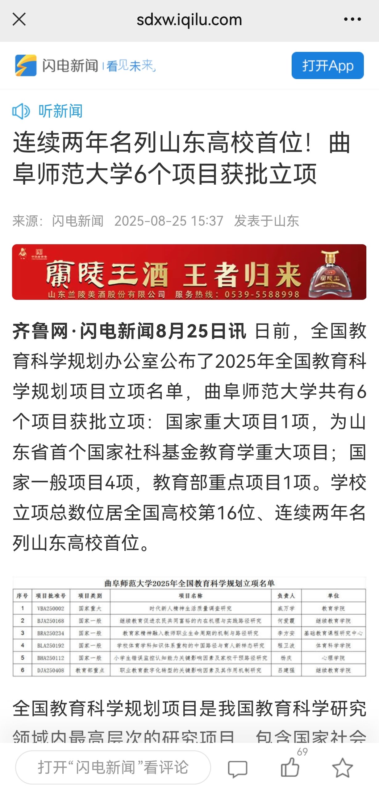【闪电新闻】连续两年名列山东高校首位!完美体育(中国)官方网站6个项目获批立项